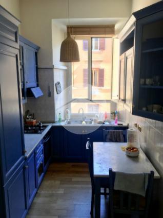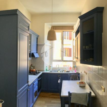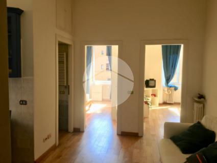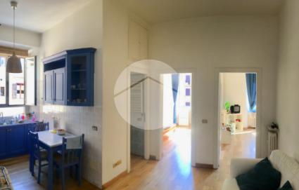 L'immobile, posto al quarto di uno stabile d'epoca servito da ascensore e portiere, si compone di ingresso con cucina completa a vista, due camere e servizio finestrato.