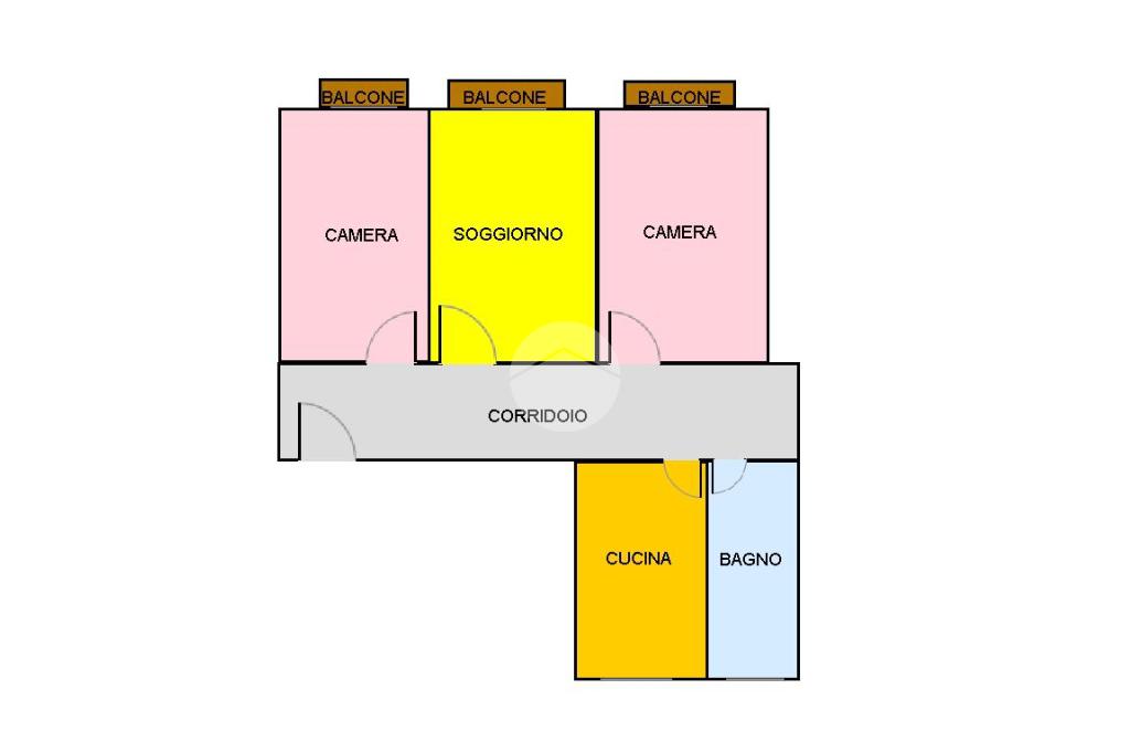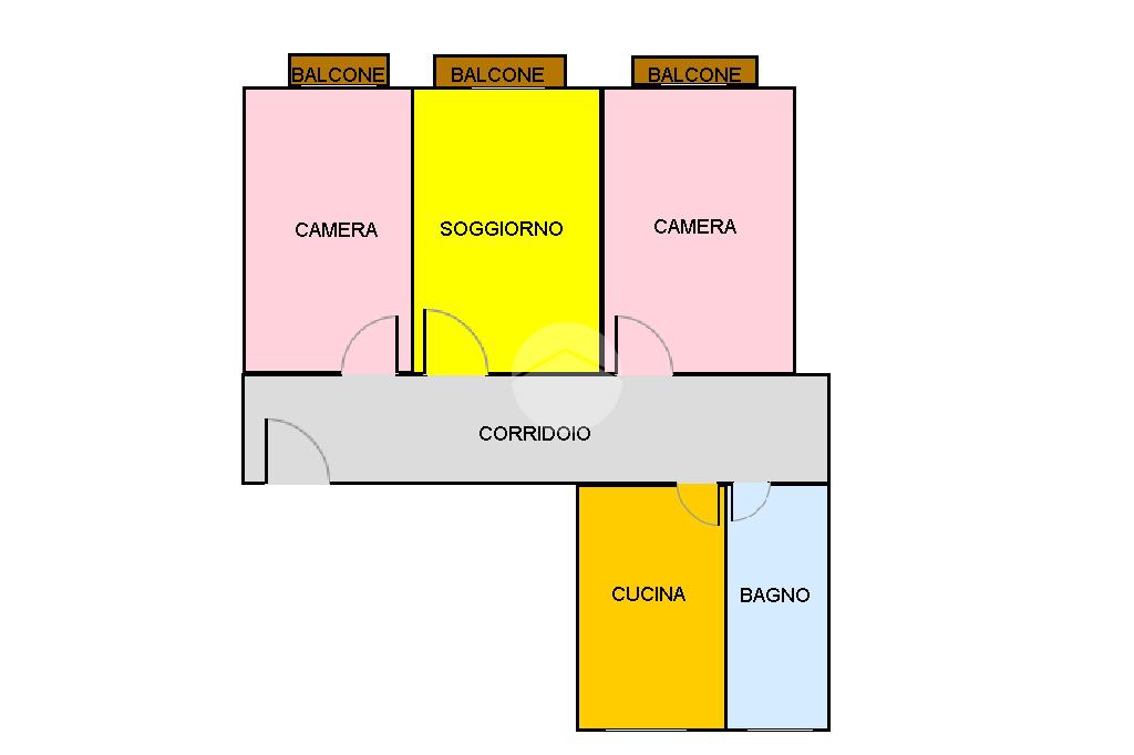 Dall'ingresso si accede ad un comodo corridoio che conduce a tutti gli ambienti della casa. Il soggiorno e le due camere affacciano esternamente su Via Giolitti e sono servite da tre balconcini. La cucina abitabile e il bagno affacciano su una corte interna.