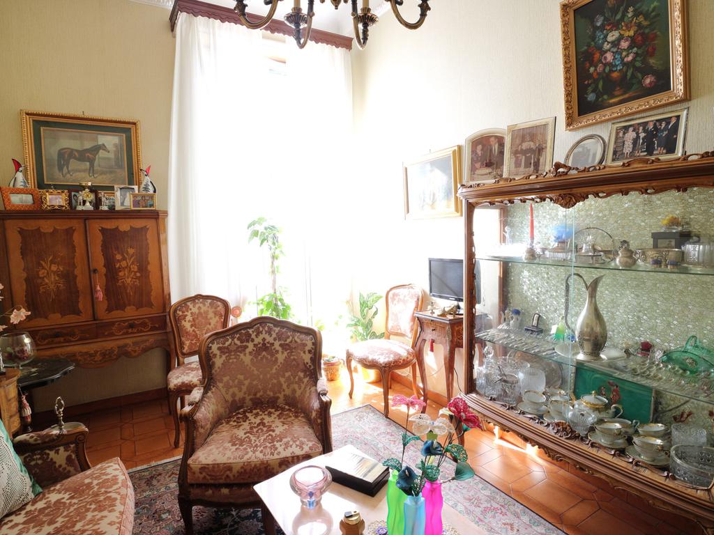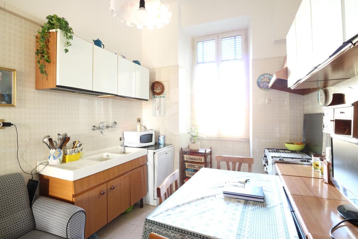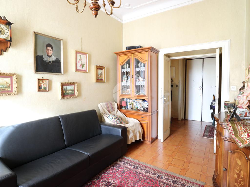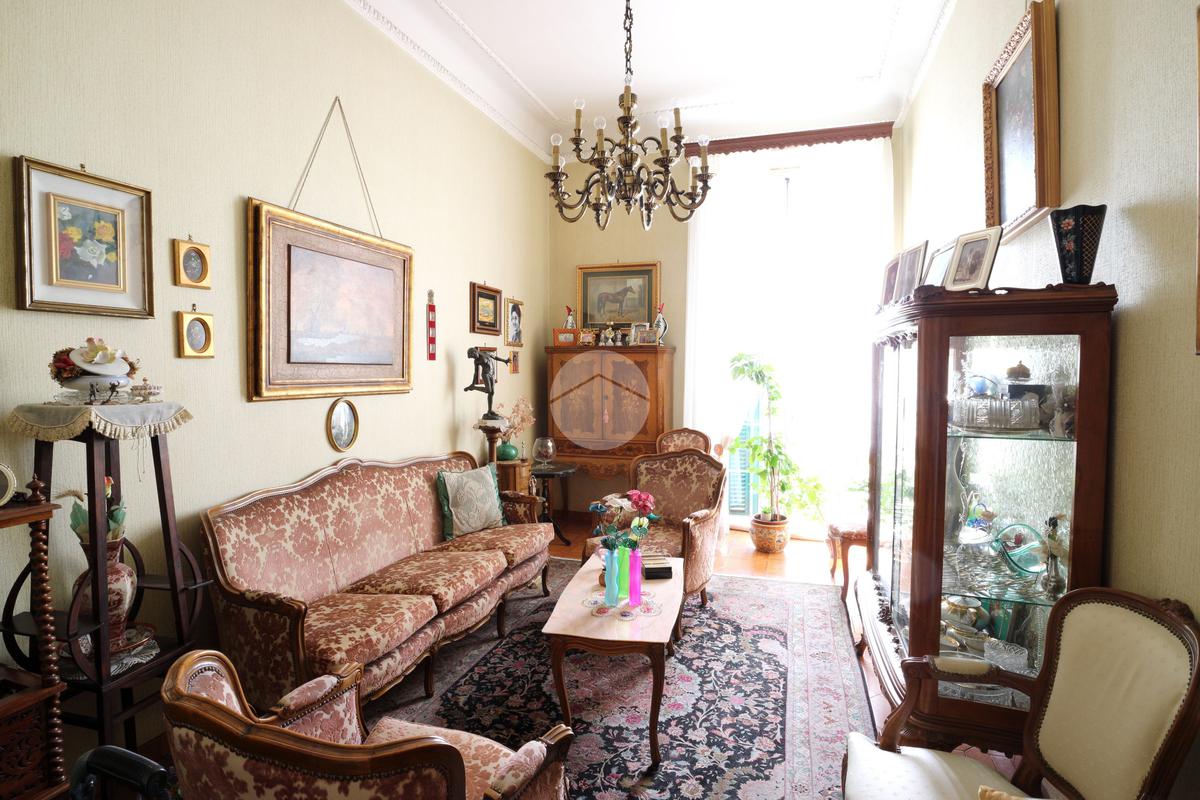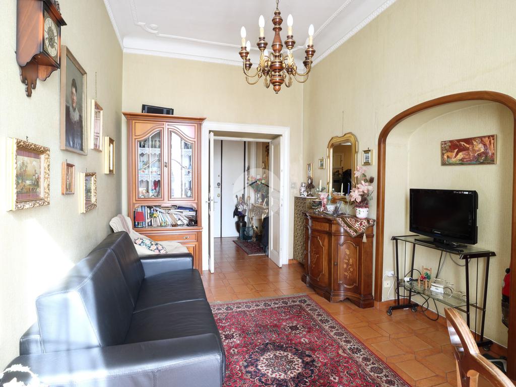 L'appartamento, posto al quinto piano di uno stabile d'epoca servito da ascensore e portiere, si estende su una superficie di circa 105 mq ed è così composto: