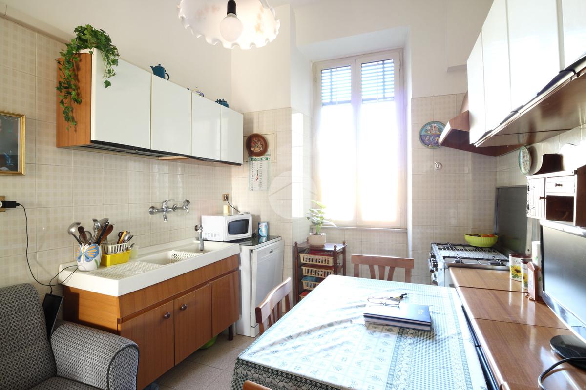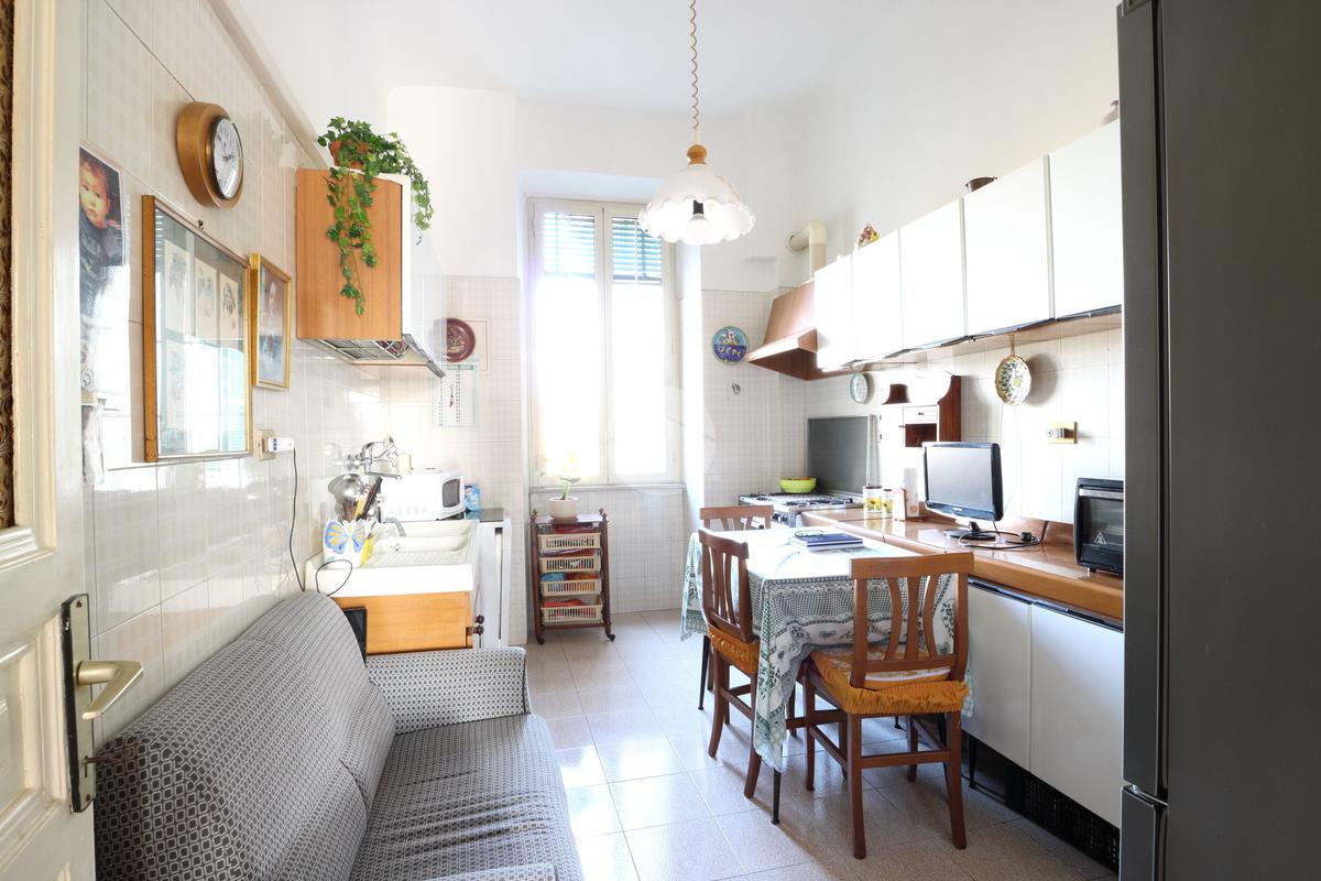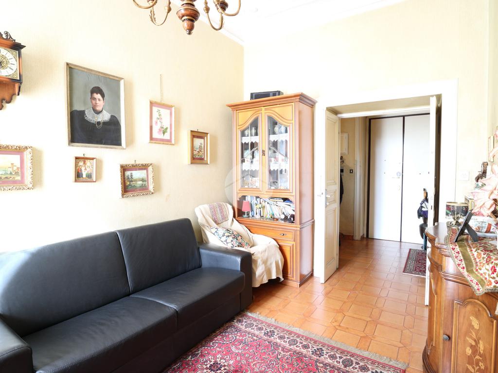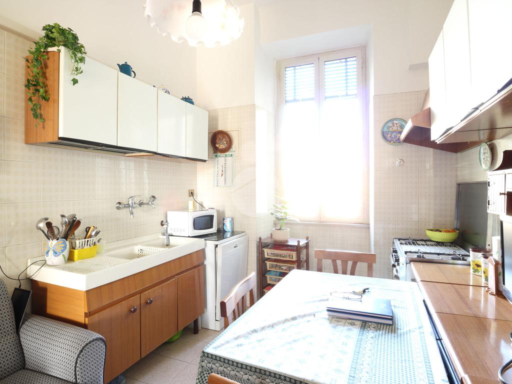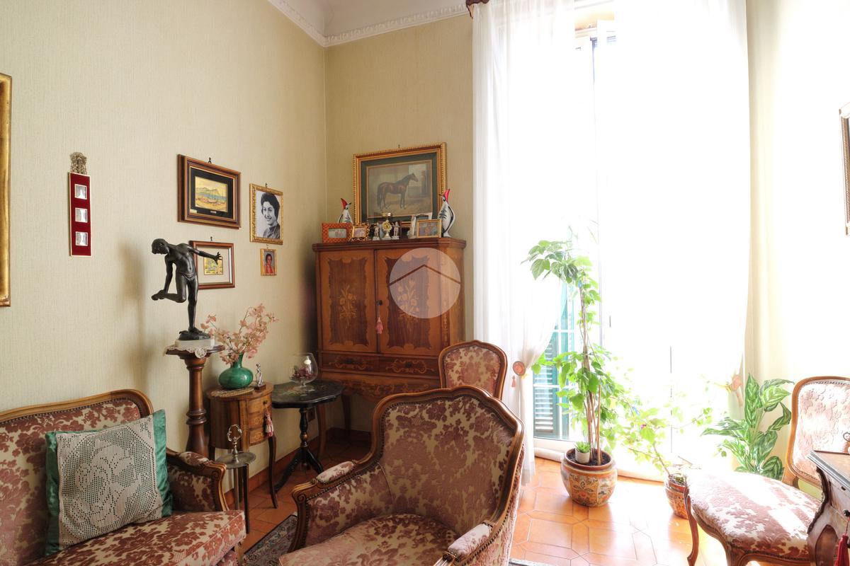 L'appartamento, posto al quinto piano di uno stabile d'epoca servito da ascensore e portiere, si estende su una superficie di circa 105 mq ed è così composto: