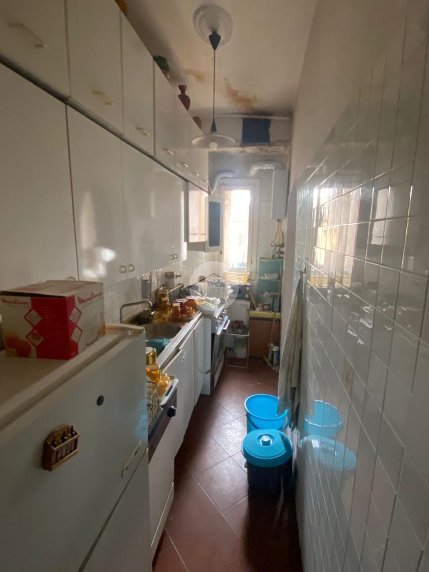 L'immobile, posto al quinto piano di uno stabile d'epoca servito da ascensore e portiere, è dotato di doppio ingresso e si estende su una superficie di circa 137 mq. Si compone di soggiorno con doppia finestra, cucinotto comunicante con il soggiorno, tre grandi camere da letto e doppi servizi, uno dei quali all'interno di una delle camere.